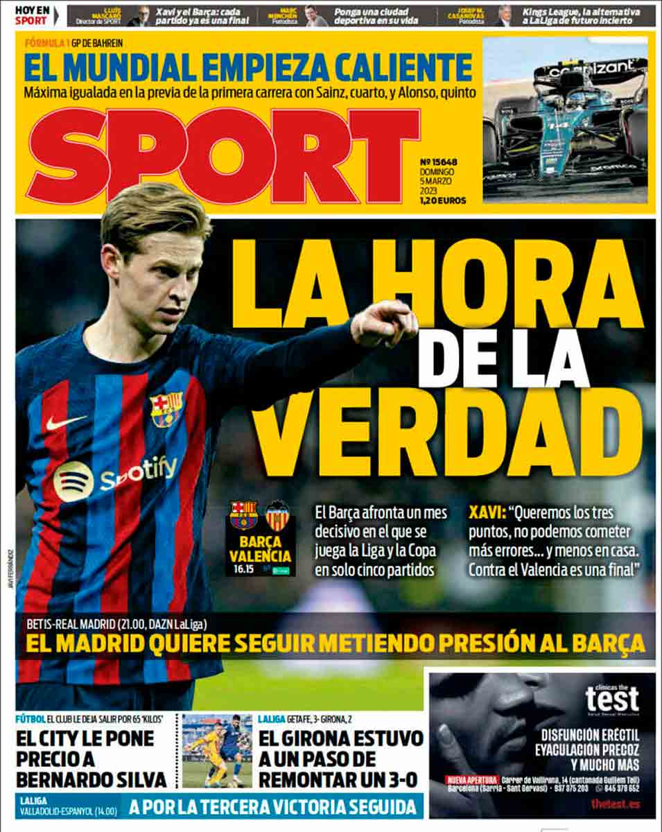 Primero lo hace la Farça, después, el Madrid. Por lo tanto, aquello de “meter presión” que preconiza Sport en portada resulta en tremenda sandez en tanto que es necesario jugar primero para meter presión después. Bienvenidos a la sección de Coco en el Portanálisis.