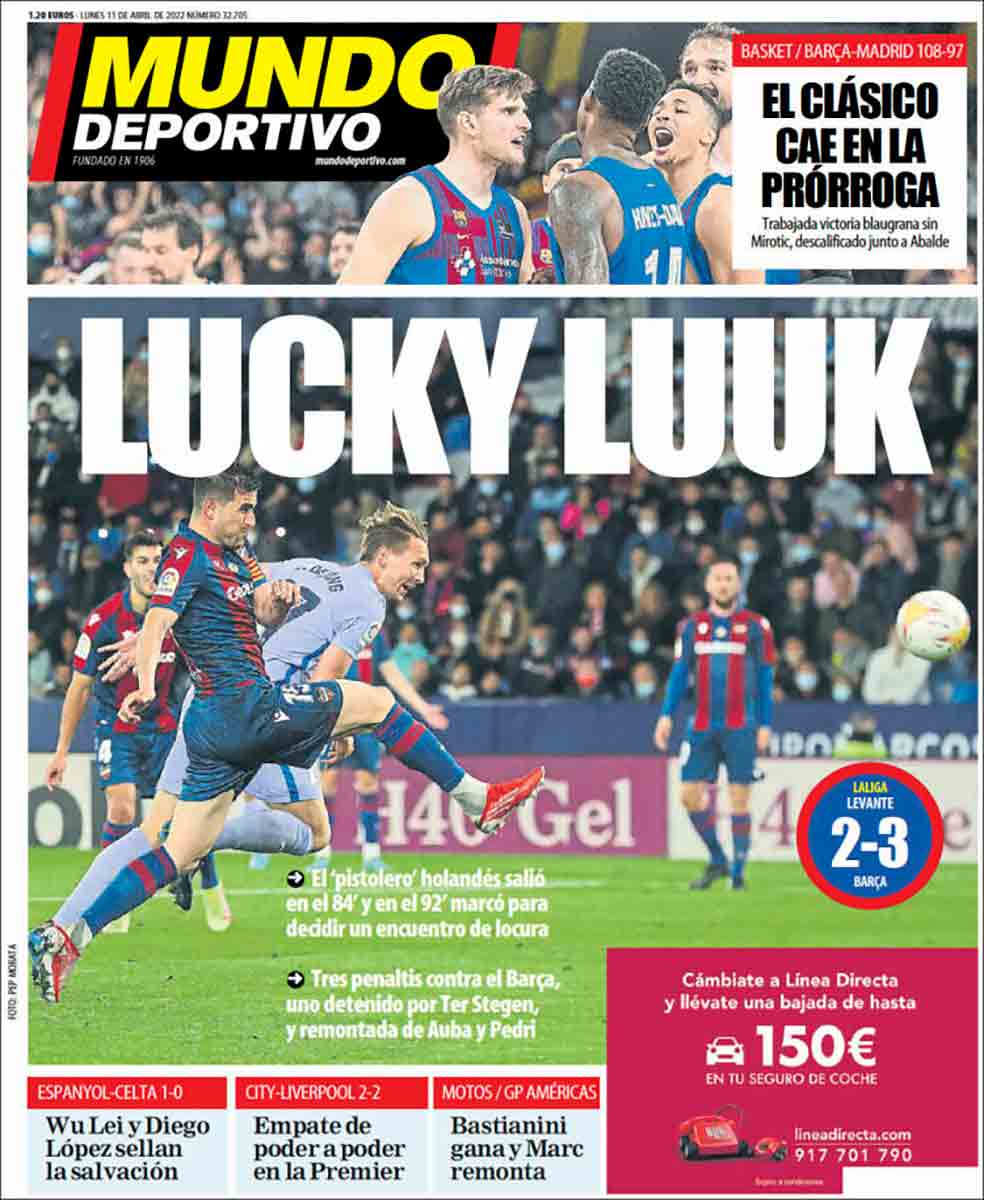 Os dejamos con Mundo Deportivo y con “Lucky Luuk”, símbolo tosco de este Barça que ni mejorando sustancialmente es capaz de dejar de estar a doce puntos del líder.