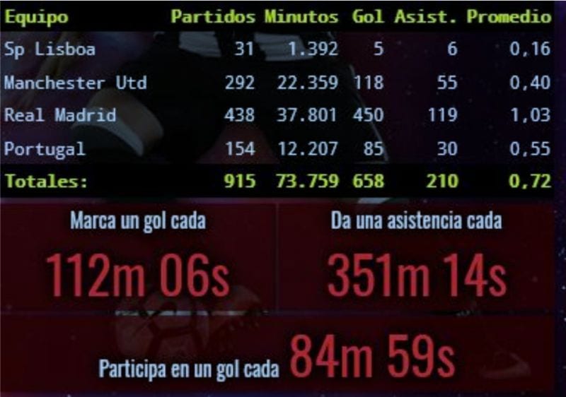 Cristiano presenta, en toda su carrera profesional, los siguientes números: