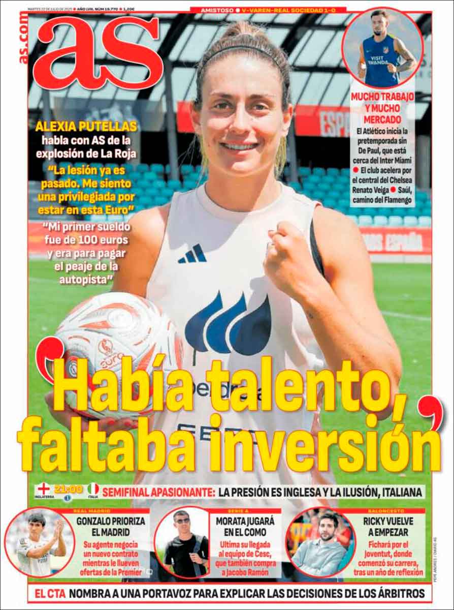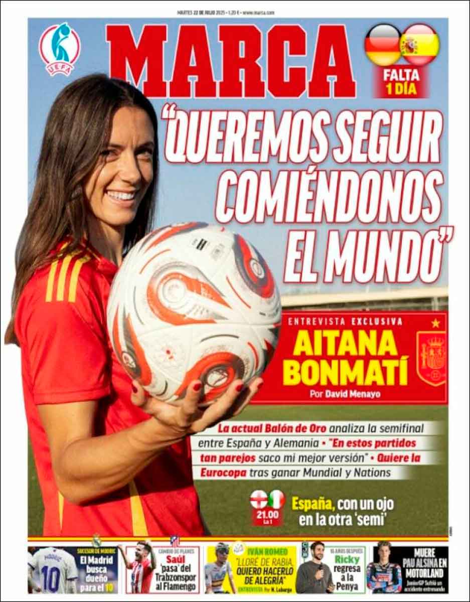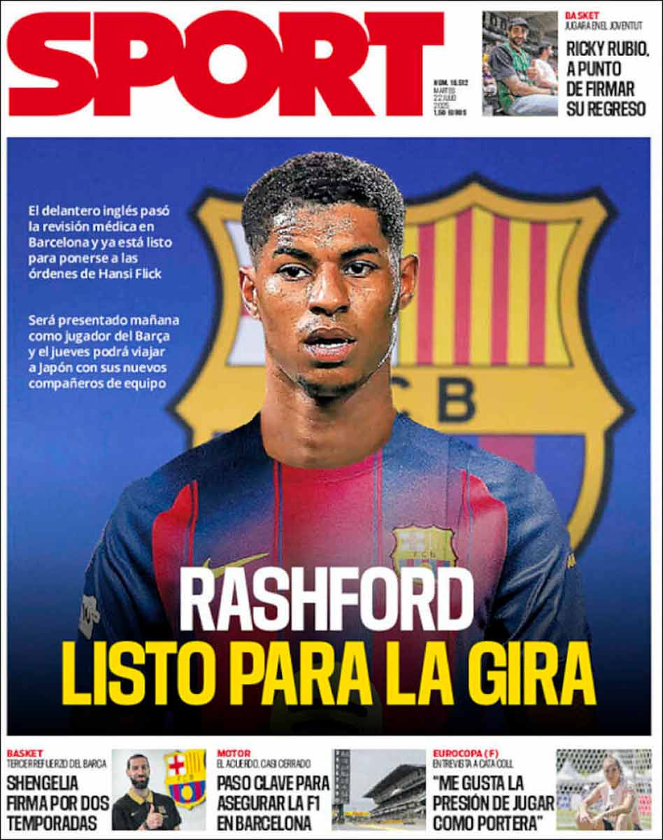 Como veis, las dos portadas madrileñas y la Sporting World, copadas de jugadoras del Real Madrid. La de Sport coge el relevo del diario de Godó y dedica su frontispicio a la presencia photoshópica de Rashford, pero aparece Cata Coll en una ventana inferior.
