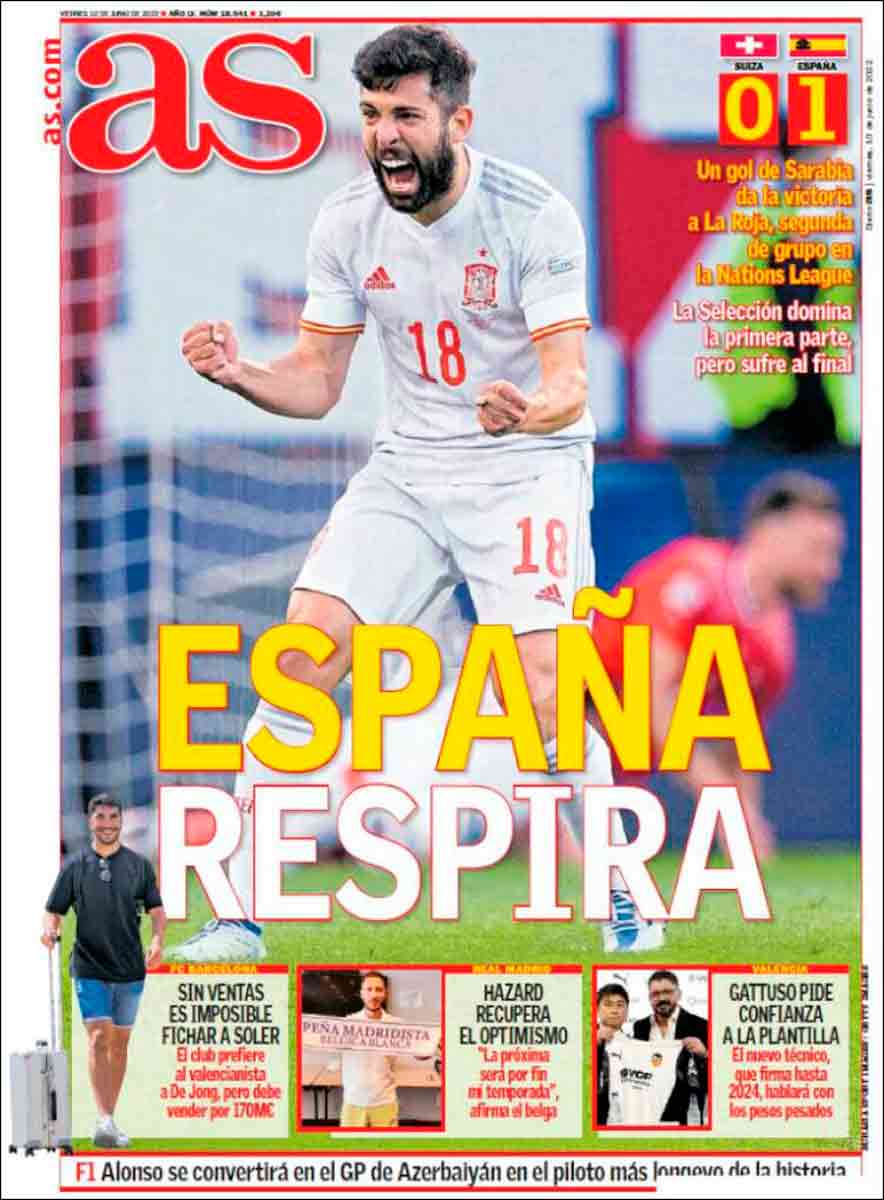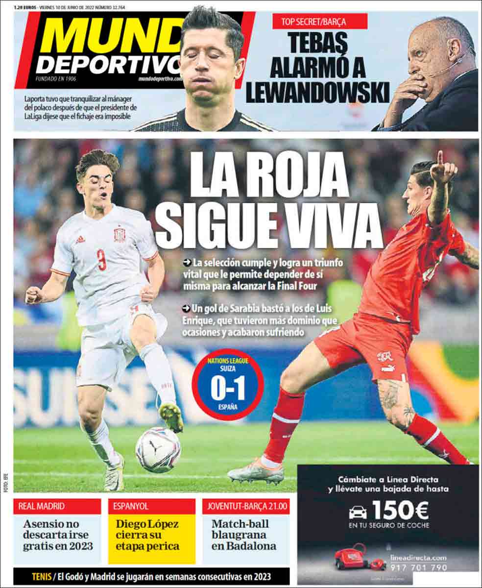 Y poco más que contaros, amigos. Mundo Deportivo insiste en la lengua insinuante de Gavi (gracias pero no, gracias) y As, tras haber detectado nuestra escasa libido en relación a la llamada Nations League, nos ofrece el afrodisíaco perfecto para que, de golpe, recuperemos (¿?) el interés por la competición.
