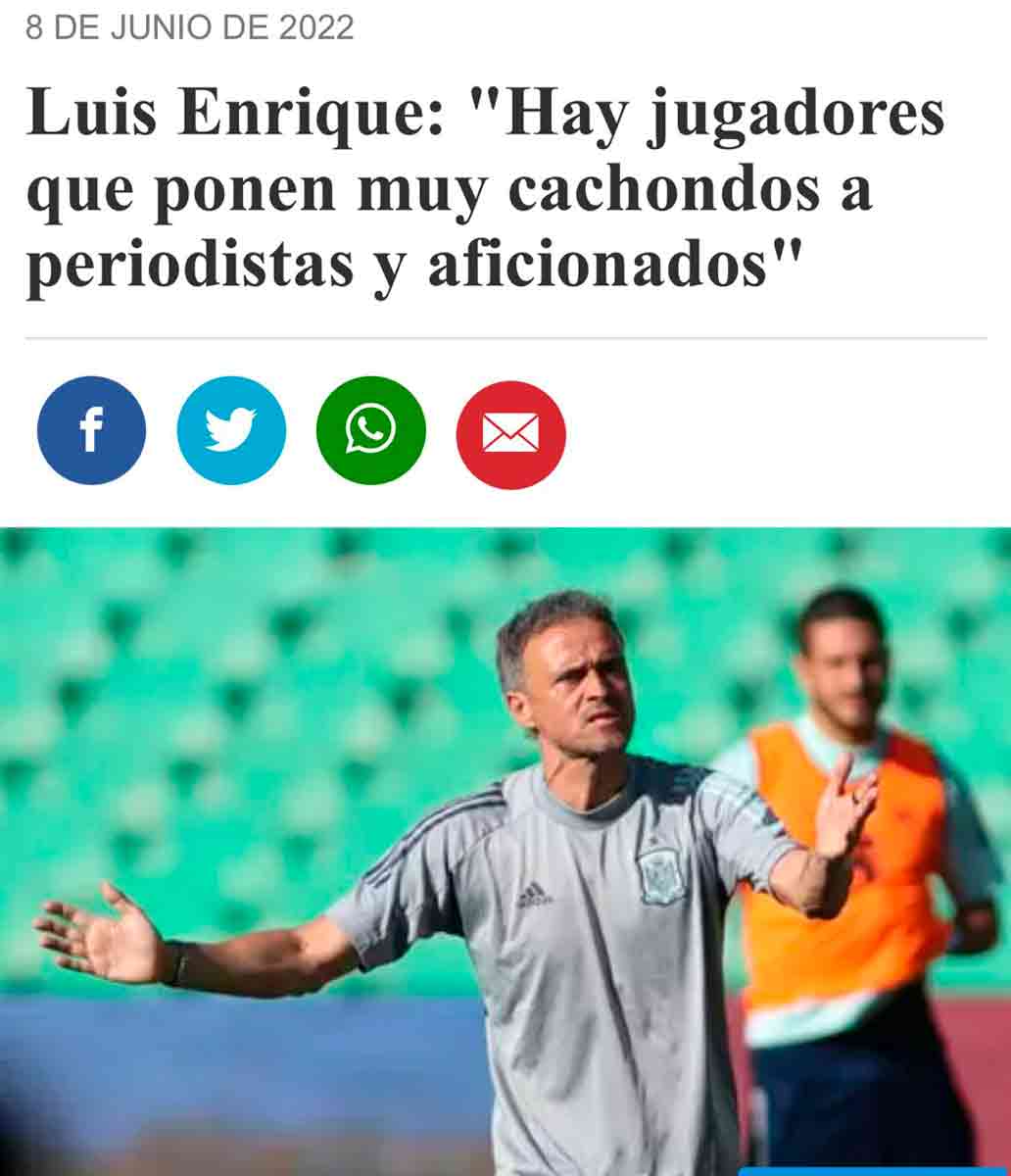 ¡Uy, lo que ha dicho! No sabemos si el ilustre Lucho se refiere a Nacho Fernández, a quienes muchos tenemos la excentricidad de reclamar para la selección en lugar del limitado (digámoslo así) Eric García. Si lo hacemos, no es por deseo sexual, aun siendo Nacho un hombre indudablemente atractivo, sino porque (llamadnos tiquismiquis) en materia de fútbol preferimos defensas centrales solventes a gente de papel. El hecho es que la cosa del cachondeo luisenriquil ha hecho fortuna, y la prensa patria le ha otorgado un efecto boomerang que inevitablemente se vuelve contra el asturiano cuando toca hacer una crónica de su muy ramplona Roja.