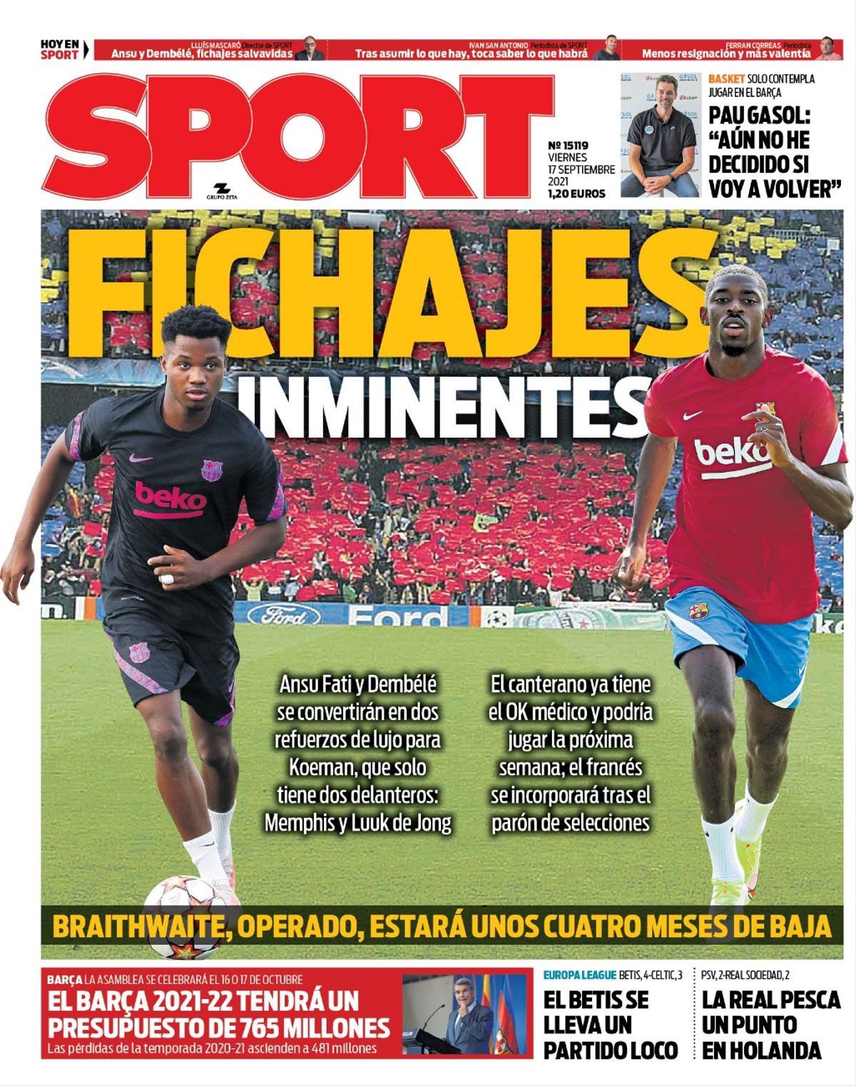 Hay que reconocer que el Sportivo se está esforzando estos dos días en reforzar la moral de la tropa, eso es indudable, pero de donde no hay, no se puede sacar. HAsta el curso pasado, los días en lso que no tenían nada que decir, ponían una portada con MEssi y a correr. PEro ahora también han perdido el comodín. De hecho, llevo 3 días sin saber nada de Pedri. Estará bien?