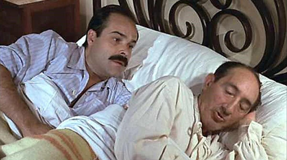 Luis Ciges, con camisón largo, a sus sesenta y tantos: "Supongo que me respetarás, ¿eh, Teodoro?". Antonio Resines, cerca de los cuarenta, con mostacho de guardia civil y ya calvo como José Luis López Vázquez, responde: "¿Qué guarradas está usted pensando, padre?". Luis Ciges: "Déjate, déjate, que un hombre en la cama siempre es un hombre en la cama, ¿eh?"