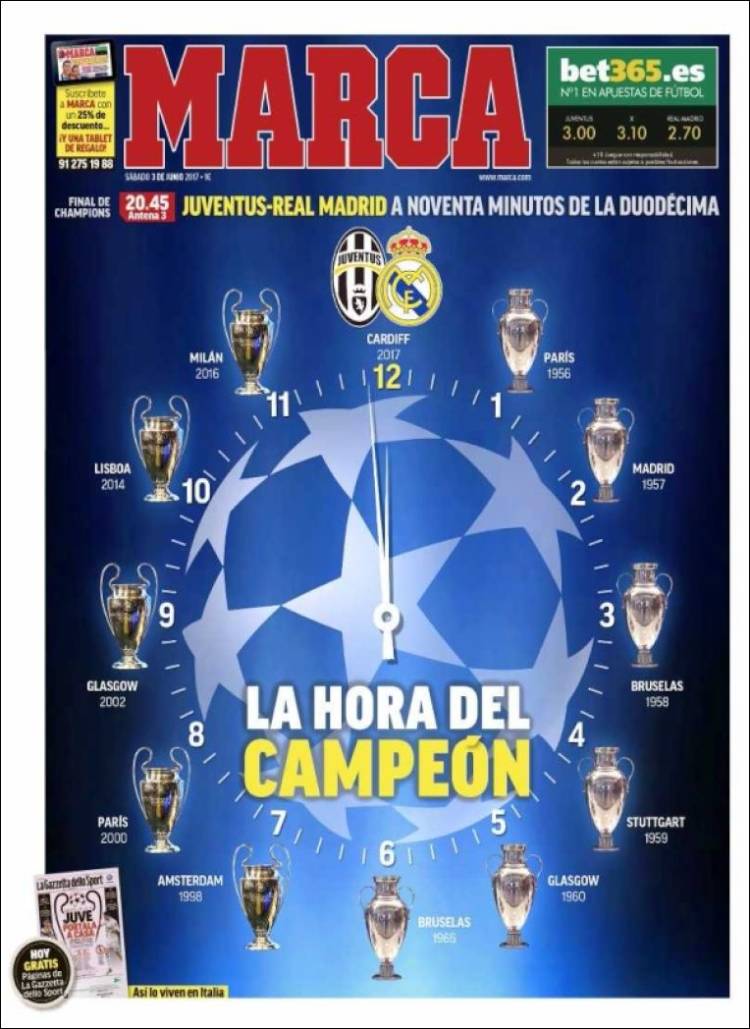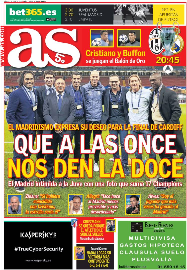 Diecisiete Copas de Europa hay en la foto de portada de As, y que nos perdonen los modernos si no decimos Champions porque nuestros mayores saben que eso de los eufemismos son cosa de estos tiempos que corren y no de los tiempos que ellos nos enseñaron a detener. Diecisiete maneras de parar el tiempo, de enlazarlo, enhebrarlo, tejerlo y entregárnoslo. Diecisiete razones para creer que hoy puede repetirse el milagro de que la física y la matemática vuelvan a quedarse a la altura de un ábaco en un suspiro, en un anhelo, en la duodécima baldosa del camino hacia lo que ya ha quedado demostrado que hemos sido, somos y queremos seguir siendo.