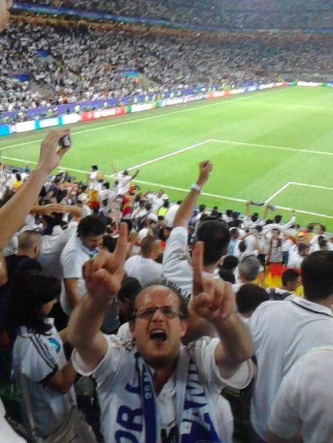 A todo esto, sonó el himno de la Champions y cuando nos quisimos dar cuenta ya estaba toda la hinchada desgañitándose para imponerse en su particular batalla de la grada. Espero que aún recuerden a aquel ser humano que habría de sentarse a mi derecha en la grada de San Siro en la hora final. Estuvo en aquel fragante autobús camino de Lombardia y aquí estaba a mi lado. Un hombre cuya primera percepción oscilante entre equilibrio, sensatez, sabiduría y ecuanimidad, saltó por los aíres y en mil pedazos según se escuchaba el pitido inicial. Fuera el furor de la grada, el latir del madridismo o la esperanza de la Undécima, el caso es que aquel hombre tranquilo pasó a convertirse en un energúmeno táctico que no paraba de dar indicaciones frenéticas al equipo. Oxigena, devuelve, controla, a un toque, combina, sal y toca. Fue apodado el Unai Emery de la tribuna y fue mi anímico sostén cada vez que un joven borrachín madridista, sudoroso y sin camiseta, se desplomaba desequilibrado sobre nuestras espaldas entre cientos de balbuceantes disculpas con aroma a ebria flatulencia. Mientras un servidor aceptaba medianamente divertido sus excusas, nuestro Emery no despegaba la mirada del verde horizonte de San Siro, receptor evanescente de millones de instrucciones que habrían de conducir al Real Madrid a la victoria.