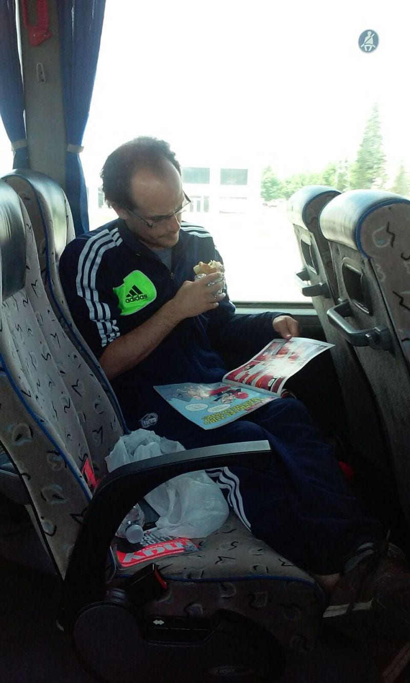 Así, envuelto en hechizos y supersticiones subí al troncomóvil que habría de conducirnos a Milano a través de la piel de toro, los Països Catalans, la Cote d´Azur y la propia Italia. Lo hice después de asistir a una intensa arenga por parte de uno de los comandantes de la hinchada, patrón de mi autobús; un discurso épico y sincero, brotado desde las entrañas, que reducía las palabras de William Wallace en la campiña escocesa a bravata de patio de recreo cuando le roban la merienda a algún colchonero.