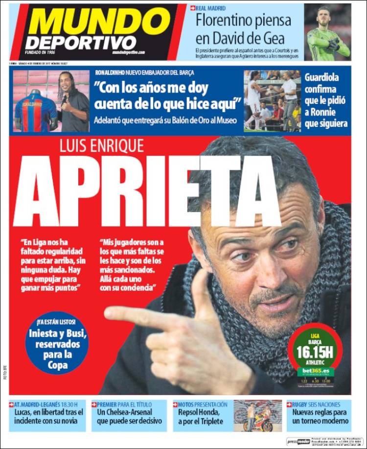 Pero olvídate de Luis Enrique, el que no se reconoce de blanco ni en los cromos. Además cualquier culé te podría contradecir, no dice ninguna mentira si miras las estadísticas.