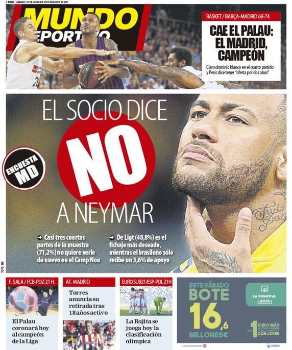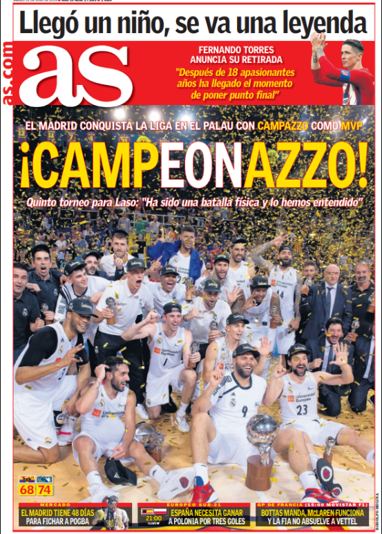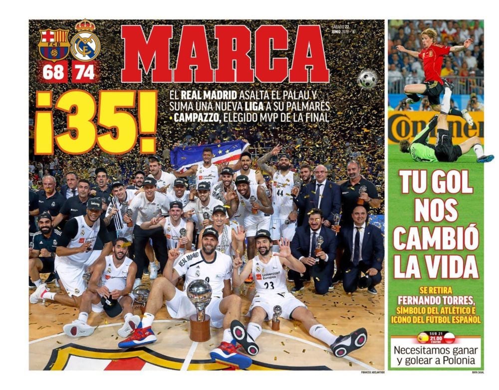 En Madrid, mientras tanto, sí están a la altura de las circunstancias. Portadas teñidas de baloncesto y titulares nada extravagantes pese a que en 'La Ouija Today' quisieron ser traviesos mezclando Campazzo con campeón. Pasen ustedes un estupendo sábado, campeones de Liga.