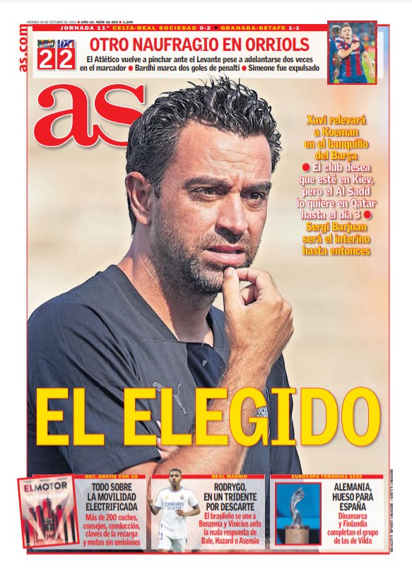 1. La prensa mesetaria, caverna mediática merengona, más madridista que nunca. Primero se quejan de un penalty de VAR (con la mano extendida) en contra de SU Atleti y en el otro panfleto al futuro entrenador de SU Barça a toda portada. Con el penalty a Vinicius que no quiso ver ese VAR del que ahora se quejan, no dijeron nada ayer y lo de los insultos racistas a Vinicius lo han ocultado. Pero oye, que la prensa es madridista...