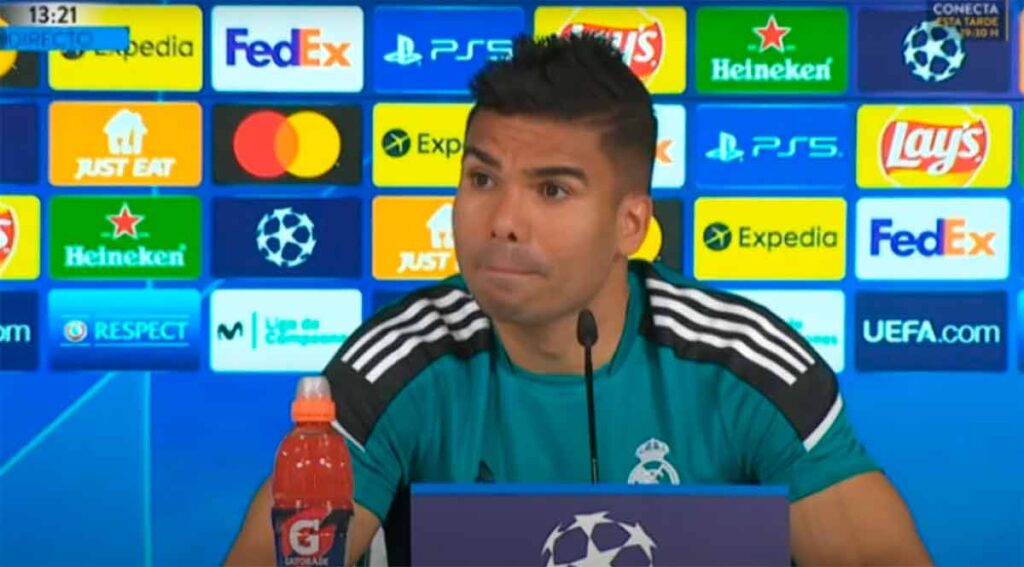 Hoy, rueda de prensa previa al Real Madrid-Chelsea de vuelta de los cuartos de final de la Champions League. Además del fijo Ancelotti, comparece Casemiro. La penúltima cuestión la plantea Pete Jensen, del Daily Mail, quien pregunta a Case si cuando la afición pita a un futbolista del Madrid afecta a todos los jugadores del equipo y que qué piensa cuando pitan a un jugador que ha ganado cuatro Champions con él. Casemiro contesta con aplomo: