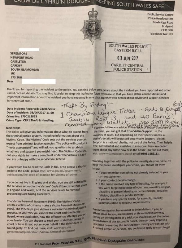 Con la sola compañía de Nalls me dirigí al control número 10, uno de los puntos de seguridad en los alrededores del estadio donde ya, desgraciadamente, era obligatoria la presentación de entrada para seguir adelante. Allí pretendí pasar mostrando sólo la denuncia policial, desatando el más amistoso y puramente celta ataque de risa del responsable del control.