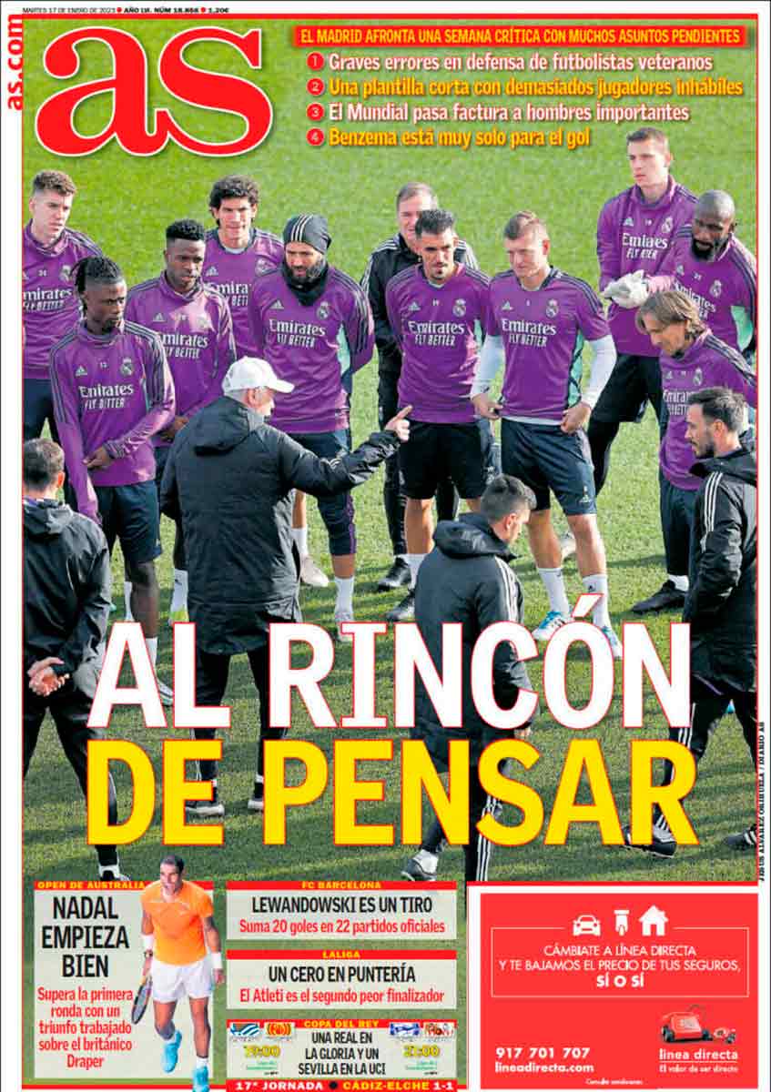 As nos manda al rincón de pensar. El primero que tiene que ir al rincón de pensar nos parece As, que ayer se descolgaba con una portada de un barcelonismo que dejaba en pañales a Sport y Mundo Deportivo. Ellos sabrán dónde está su audiencia. Que lo piensen en el rincón.