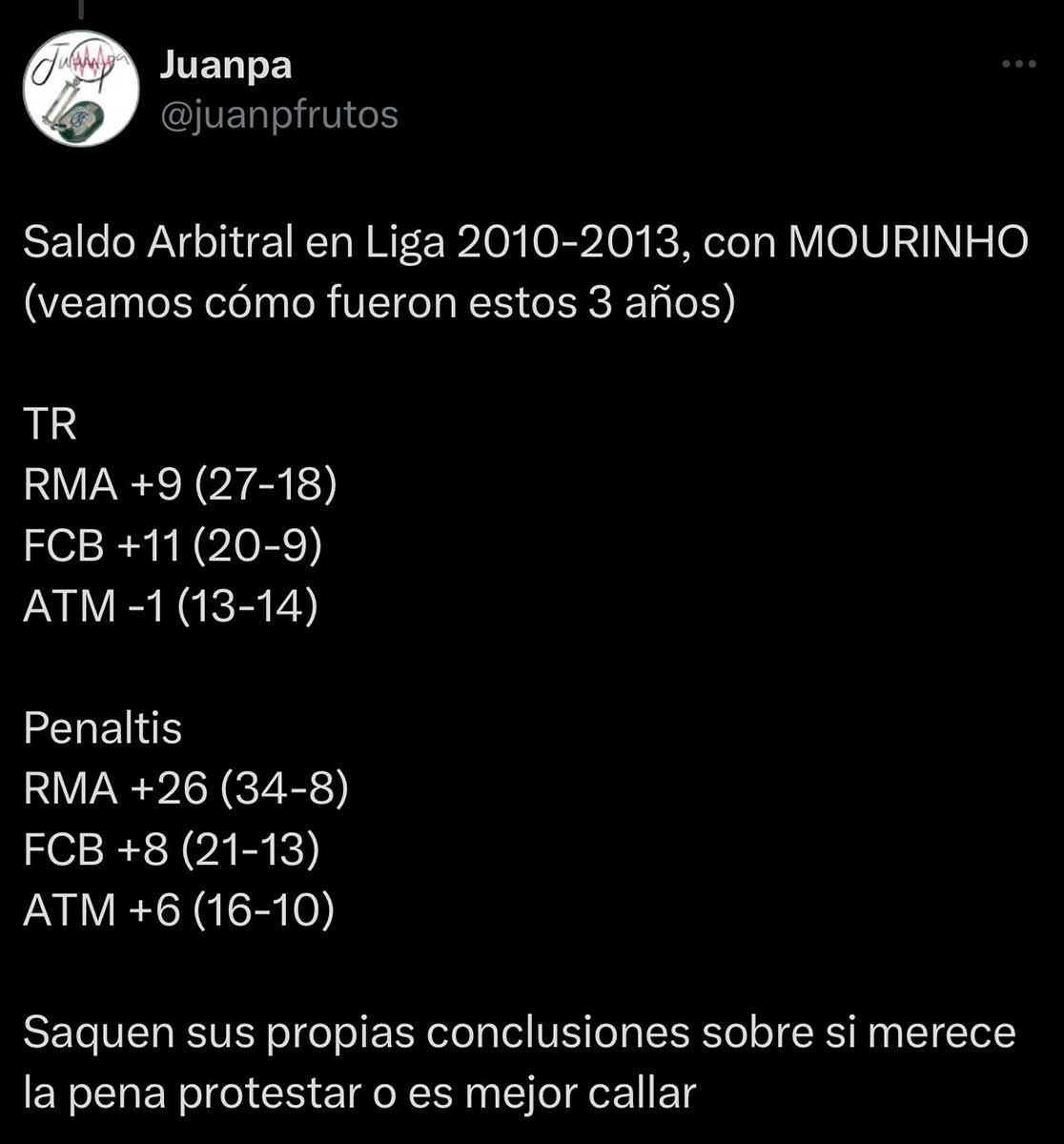 No sólo el actual arbitraje español no merece la más mínima consideración o el beneficio de la duda, sino que además, esta tibieza de Carletto y cualquiera que represente al Real Madrid públicamente desde hace años (la primera etapa de Carletto, prácticamente) no mejora en absoluto los arbitrajes recibidos, más sangrantes cada temporada.
