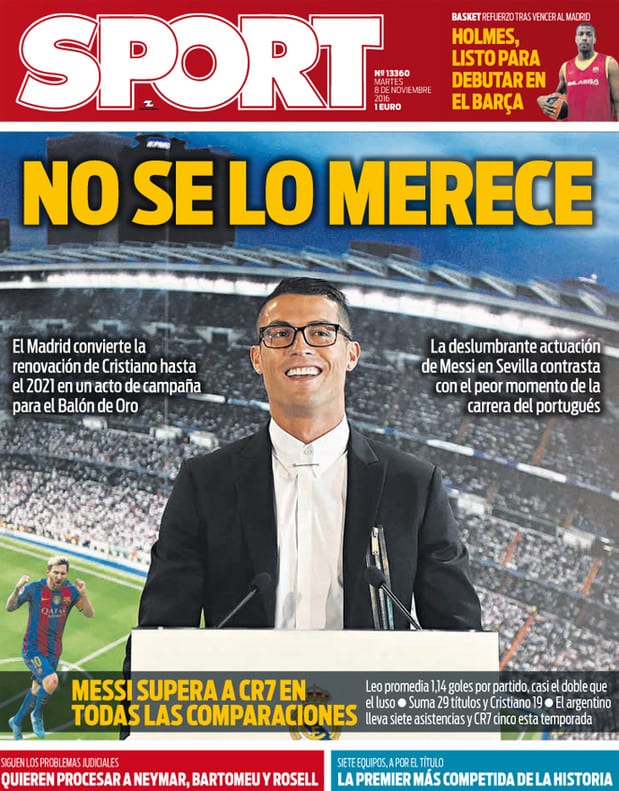 Pero las turbulencias empezaron a llegar. 'Sport' se dio cuenta que Cristiano Ronaldo empezaba a ganar enteros e intentó apostar por el desprestigio en lugar de hacer hincapié en tus méritos. Ya soltaban tu mano con el fin de intentar golpear al astro portugués. Importaba más hundir que encumbrar.