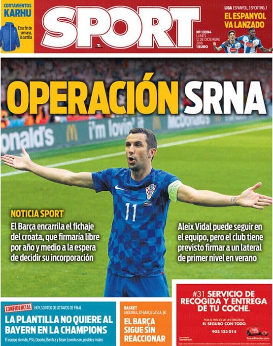 Y, de repente, hoy. El día en el que el mundo conocerá al nuevo Balón de Oro, 'Sport' se olvida de ti. Directamente te cambia por Srna, que le ha dado al Barcelona lo mismo que Clos Gómez. Bueno, en realidad no. Digamos que lo mismo que Undiano Mallenco. Tampoco.