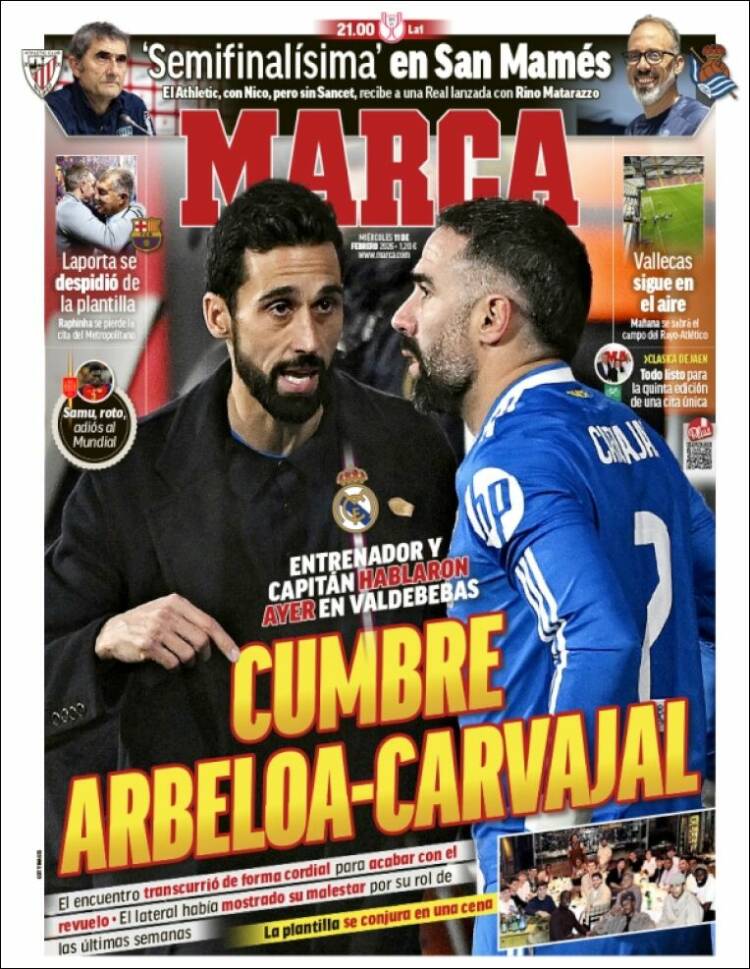 Marca se acerca con cautela al asunto en su primera plana de hoy, informando acerca de un encuentro entre entrenador y subordinado en el día de ayer, encuentro diseñado con el fin de limar las posibles asperezas.