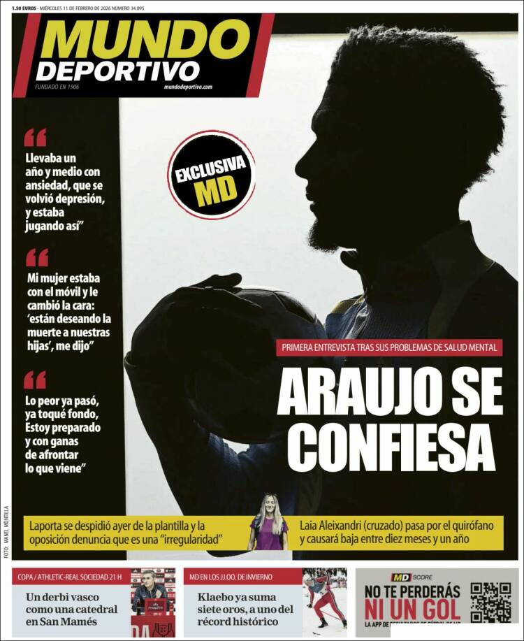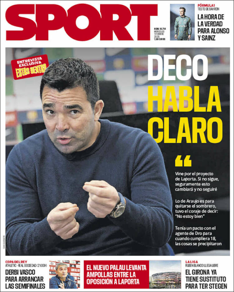 Os dejamos con Deco en la portada de Sport. También habla de Araujo.