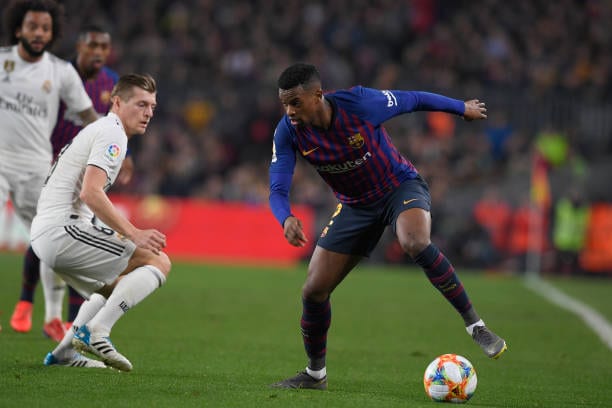 Otra cuestión que podría estar barajando Zizou, a tenor de lo visto últimamente al equipo barcelonista, es enseñarle al Barcelona la banda izquierda como la principal vía a través de la que obtener profundidad; guiándole hacia y por ella para tentarle a que reparta los intentos de llegada al área madridista entre las dos orillas del campo más de lo que suele.  Más aun teniendo en cuenta que, en ausencia de un Jordi Alba que podría no ser titular por falta de ritmo, el lateral izquierdo lo están ocupando unos Junior Firpo y Nelson Semedo que no están eligiendo ni ejecutando bien en el último tercio ni ayudando a su equipo a que llegue a él.