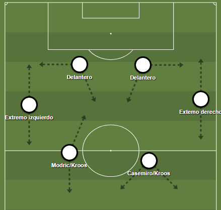 4-4-2: Casemiro y Kroos formarían una pareja demasiado plana, el brasileño y Modric podrían complementarse bien, y Luka y Toni no parecen tener la energía suficiente para sostener el centro del campo en un día grande. En este sentido, no parece este sistema una solución a los problemas individuales de Kroos, Modric o Casemiro, aunque sí para el equipo. Con él, Zidane ya ofreció un Madrid muy competitivo, con jugadores con mucho recorrido en banda y un complemento goleador a Benzema, que en este caso sí serían los Icardi o Piatek de turno.