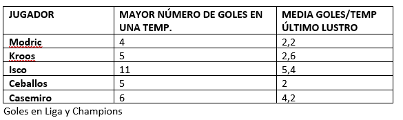 No me parece que sea tan importante la aportación goleadora del centro del campo como que aseguren un gran despliegue y una buena distribución.