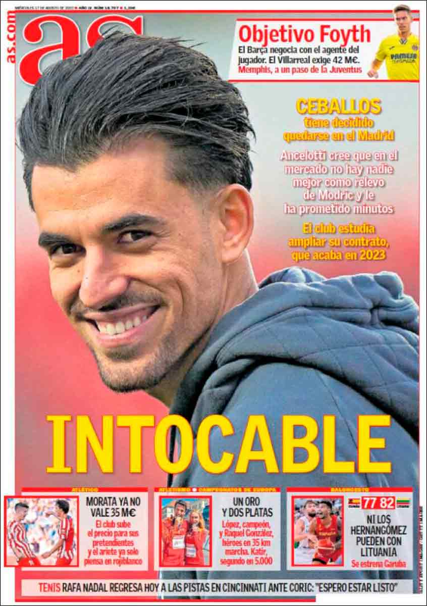 Por lo demás, Ceballos podría renovar según As (nos alegraría, aunque la pretensión del propio As y de otras gentes de hacerle pasar por el nuevo Modric no nos parece que le haga un gran favor al chico) y el Barça podría fichar a Foyth, buen lateral del Villarreal.