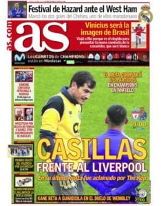 En efecto. Canino en fichajes, Relaño apuesta por un Throwback Tuesday que rescate el sentimiento nostálgico de los admiradores de Iker. Deseamos a Iker toda la suerte del mundo en su enfrentamiento con el Liverpool, pero la tentativa de As nos produce un poco de penita. Quién sabe, puede ser un nicho eso de intentar satisfacer a un lector que sigue de cerca las interioridades de los exjugadores blancos allá donde van. Es otra forma de pajiplantilleo, solo que retrospectiva, tántrica, todo para dentro. Puede tener su público. Buena suerte.