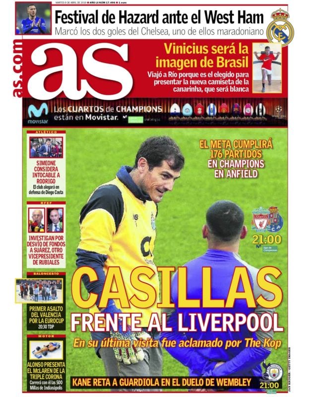 Tristemente eliminado el Madrid de la Champions, y carentes en Valdebebas de insiders que puedan dar pábulo al pajiplantilleo, As se aferra a lo que sea. Lo que sea, hoy, es el portero del Oporto, Iker Casillas.