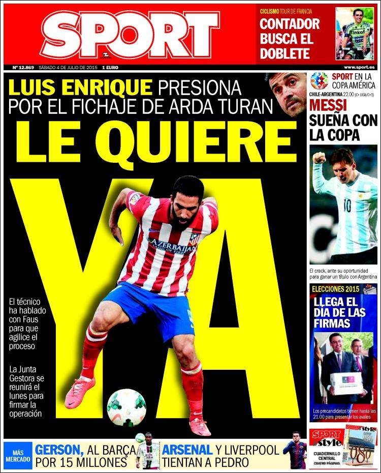 Quien toma estos días el testido del jugador francés es el turco Arda Turan: un notable jugador, que pertenece todavía a un equipo que parece no considerarse rival del Barcelona. No seremos nosotros quienes contribuyamos a la autoestima atlética, pero nos llama la atención (o no) que no sean capaces ellos mismos de postularse como un club de máximas aspiraciones. Aunque, bien pensado, quiénes somos nosotros para decidir el contenido de las aspiraciones de nadie. Las nuestras tienen que ver con ganar todo lo que sea posible; las atléticas, que las sigan decidiendo ellos por reacción.