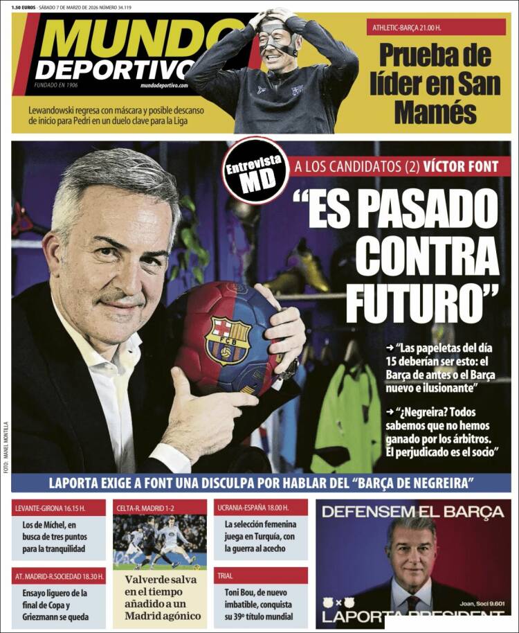 Mundo Deportivo opta por centrarse en la pugna entre los candidatos presidenciables culés. A uno de ellos se le ha ocurrido mentar a la bicha (o sea, a Negreira), y se ha liado parda. Laporta ha "exigido" a Font "una disculpa" por hablar del "Barcelona de Negreira". Llama la atención que alguien tenga que disculparse por eso. Hablar del Barcelona de Negreira es como hablar del Parque Güell de Gaudí o de la Quinta Sinfonía de Beethoven. ¿Qué objeción existe en relacionar obra y autor?
