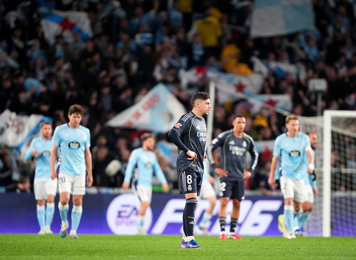 El Madrid tocaba, Tchouaméni atraía, como un agujero negro, toda esfera que se le acercase. Pero el equipo no creaba ocasiones claras. El partido se había convertido en un tiki-taka sin fuste. El Celta tocaba menos, pero disparaba con peligro. En el 45', Courtois realizó otra buena intervención para evitar el segundo gol local.