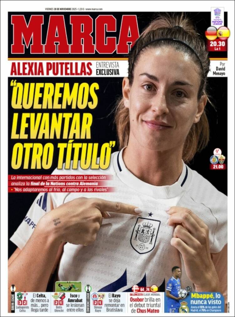 Resoplando y café en mano, vemos que Marca abre con Alexia Putellas, destacada jugadora de la selección femenina, dejando unas declaraciones de enorme profundidad: “Queremos levantar otro título”. En referencia, suponemos, a la final de la Nations League. Las alemanas, enigmáticas, no han especificado todavía si prefieren levantarlo, empujarlo, ganarlo, perderlo o empeñarlo.