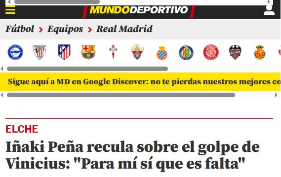 Tampoco es normal que los medios, tan tolerantes con la corrupción sistémica de la MLN, quieran vestir de “polémico” el empate del Real Madrid en el Martínez Valero. Todo por una supuesta falta de Vinícius a Iñaki Peña que el propio jugador reconoció en caliente que no fue tal: