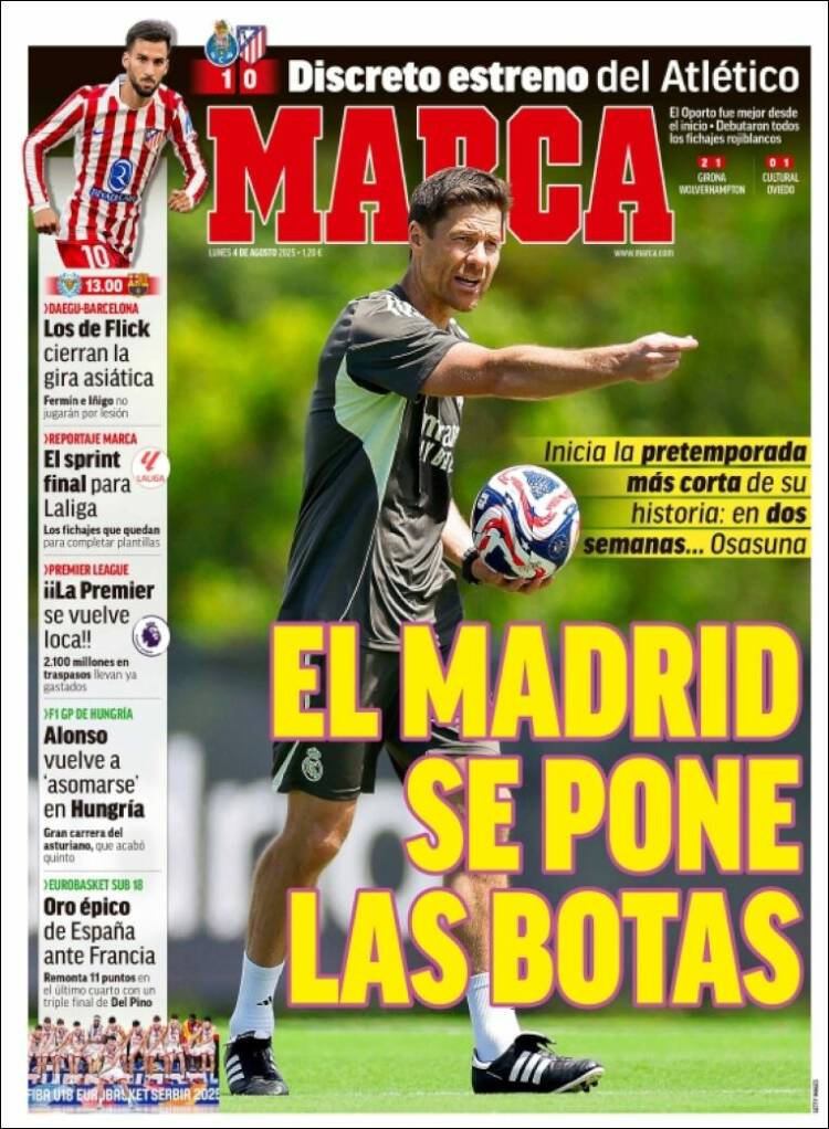 El tema es que no tenemos mucho que decir sobre las portadas del día, ni sobre las cosas de las cuales las portada tratan, y ello es debido a la naturaleza inane de todo cuanto sucede en el estío profundo donde nos hallamos. Es por ello que nos vais a permitir, si ello no supone un abuso de la confianza con la que nos honráis, prolongar un poco las frases hasta llegar a cubrir la extensión mínima que se le supone a un portanálisis, sin perjuicio de que en alguna ocasión las frases sean extendidas de manera que pueda (o no) antojarse medianamente artificial y con más regodeo en las formas que sustancia misma, lo que en todo caso disculparéis en atención a la sólida relación que nos une como (respectivamente) lectores y hacedores de esta que ya antes llamábamos -quizá con alguna arrogancia que sabréis igualmente perdonar, en vuestra característica generosidad madridista- vuestra sección favorita de La Galerna, medio independiente de opinión especializado en el Real Madrid y el universo que rodea al club merengue, según nos define ChatGPT. “Fue fundado”, agrega esta IA, “en 2015, y desde entonces se ha consolidado como uno de los principales referentes del madridismo online, con análisis que combinan la pasión, la ironía, el rigor y el humor”. Podríamos aquí hacer copy/paste de todo lo que ChatGPT dice sobre nosotros, si bien correríamos el riesgo de que se nos acusaran de uso, abuso y mal uso de dicha herramienta digital, la cual nos interesa en tanto instrumento pero no consideramos que, de momento, sea capaz de alcanzar las cimas de modesta brillantez que nuestros muy humanos colaboradores (y en este caso portanalistas) son capaces de invocar, alumbrar, desarrollar y plasmar sin apenas esfuerzo, o al menos de cara a la galería, pues si bien este esfuerzo diario puede parece desde fuera que brota de manera natural, no es menos cierto ni verdadero que nos causa no pocos desvelos en tanto en cuanto no siempre está uno fino ni inspirado, no siempre las primeras planas de la jornada deparan ideas sugestivas que desarrollar, y he aquí cómo en determinadas ocasiones (pero también en las no muy determinadas, o en las no determinadas en absoluto) las frases tienden a alargarse en lo que a primera vista sería un eterno circunloquio ajeno al fuste y la sustancia que se le supone a esta vuestra sección favorita, si se nos permite la inmodestia por tercera vez, o si no se nos permite, pues en todo caso vuestras eventuales protestas al respecto no van a llegar a nuestros oídos.