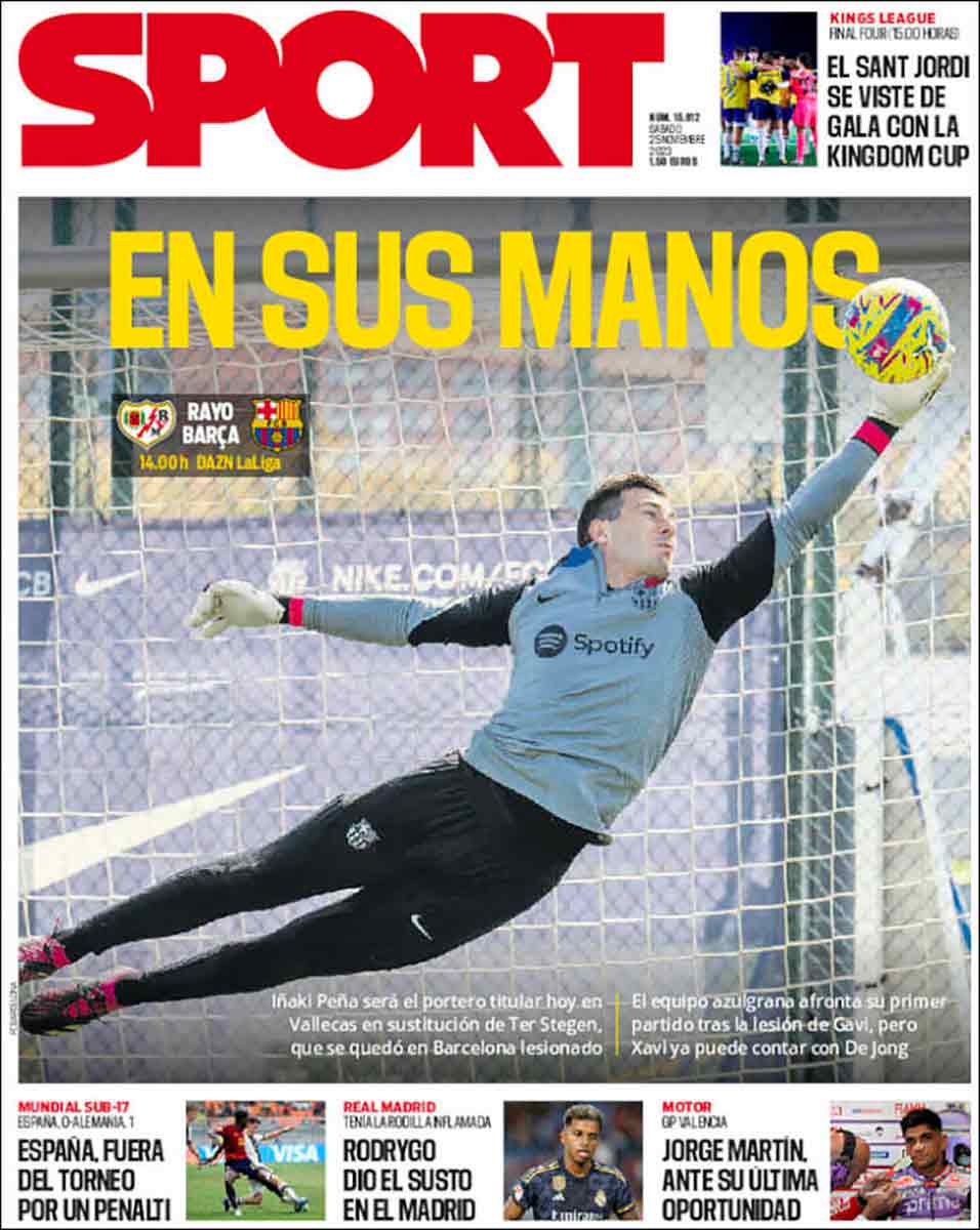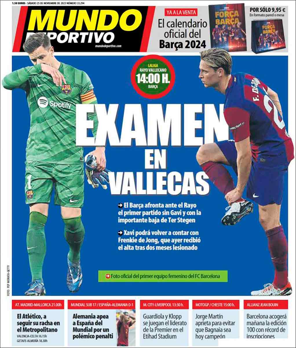 Empezamos por Marca sin ningún motivo especial, ya que los cuatro frontispicios nos despiertan el mismo interés, similar al goce que sentimos ante la perspectiva de disfrutar de una conferencia política de Pep Guardiola.
