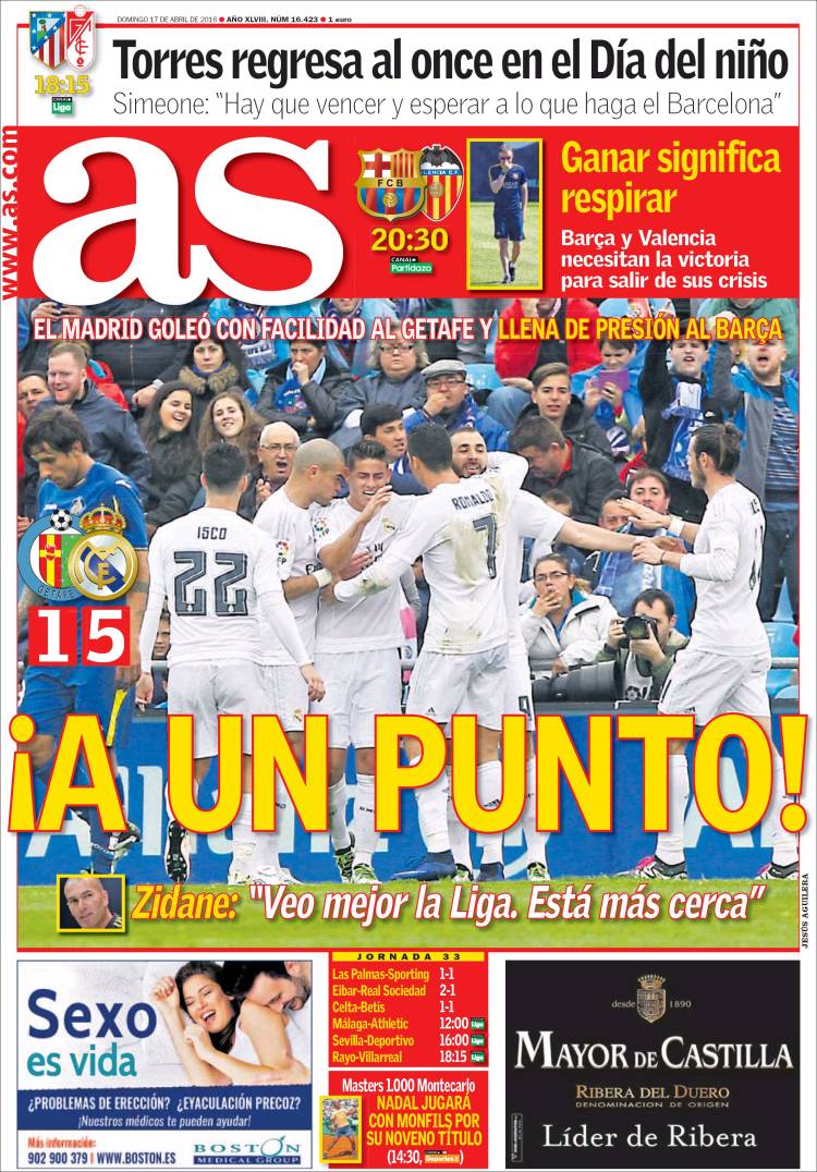 Así que chas y a tu lado, a un solo punto y esperando que esta tarde, Valencia mediante, podamos seguir cantando juguetones la citada canción de Álex y Christina. "Porque te juro que soy aire, aaaah, pegado a ti, no puedes escapar", tal y como cantaba Pedro Marín allá por los primeros años 80 para delirio de los jóvenes del momento y para que hoy nos hayamos hecho el café con la certeza de que esa frase fue escrita por un madridista (uno pelín hortera, todo hay que decirlo, pero madridista al fin).