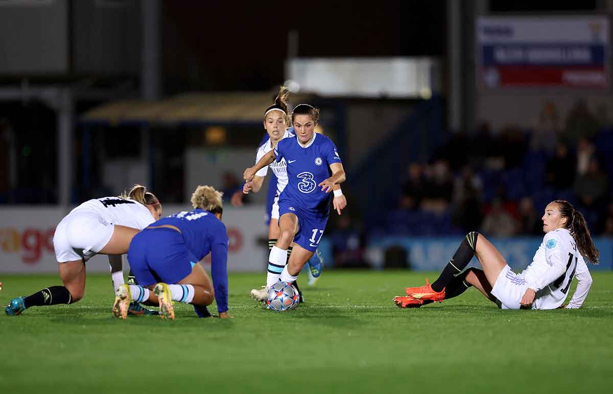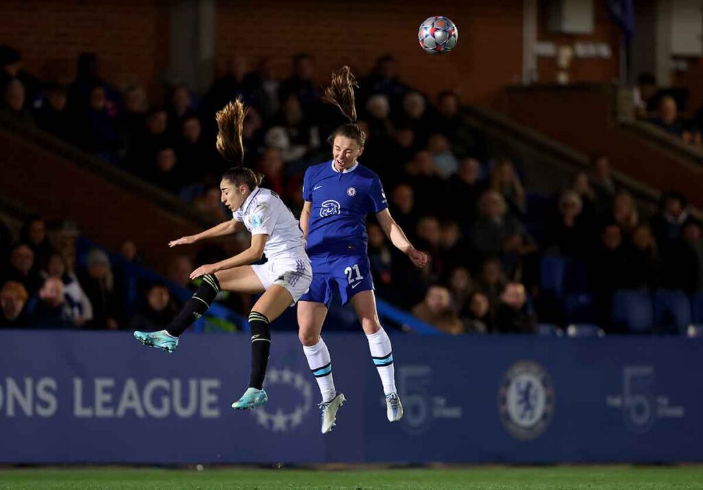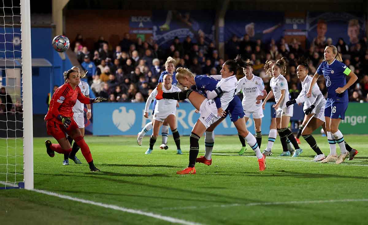 El empate a nada al descanso fue la mejor noticia para el Real Madrid, pues el punto habría sido valiosísimo, y con ese ánimo positivo saltaron de vuelta al verde las madridistas. Entonces se vieron los mejores minutos de juego, ahora sí con circulaciones de balón en la mitad de campo de rival, y quedó patente que un Real entonado no andaría demasiado lejos de este Chelsea. A pesar de que del lado londinense faltaban Pernille Harder y Melanie Leupolz —dos de las mejores jugadoras de Europa—, hablamos de un equipo que lleva varias temporadas consecutivas asegurándose la llegada de talento y ofreciendo algunos de los mejores salarios en el panorama del fútbol femenino. No por casualidad la ex central del Lyon Kadeisha Buchanan jugó el partido vestida de azul, y no de blanco.