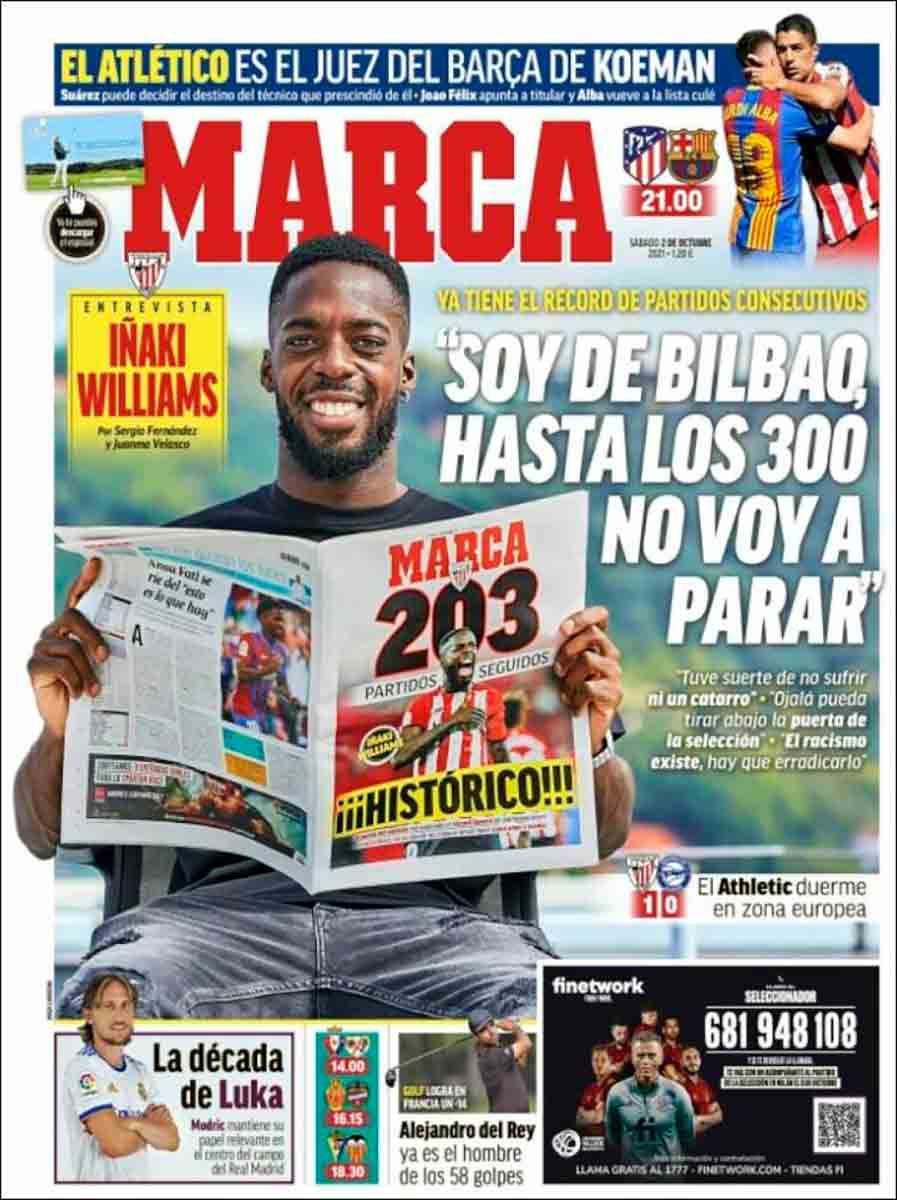 Marca, por ejemplo, pasa de todo y se descuelga con el bueno de Iñaki Williams. Al parecer lleva el hombre jugados 203 partidos seguidos. Lástima de titular de Perogrullo porque los de Bilbao —y los vascos por extensión— nacemos donde nos sale de los cojones. Es más. Si paseando por Altos Hornos nos encontramos con una fábrica de Aceros Inoxidables, pues, oye Patxi, nos “acemos”.