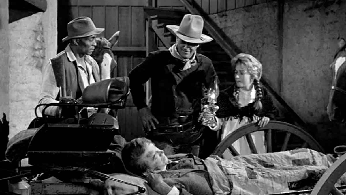 “Río Bravo”, un western que es sobre todo un canto a la amistad, al compromiso, al trabajo en equipo, “ningún jugador es tan bueno como todos juntos”, decía D. Alfredo, en el que un sheriff cincuentón (Wayne), un anciano tullido (sensacional Walter Brennan), un alcohólico (Dean Martin en su mejor papel de siempre) y un joven imberbe (el cantante Ricky Nelson), hacen frente a un numeroso grupo de forajidos que quieren liberar a uno de sus cabecillas encerrado en la prisión del pequeño pueblo del Oeste.