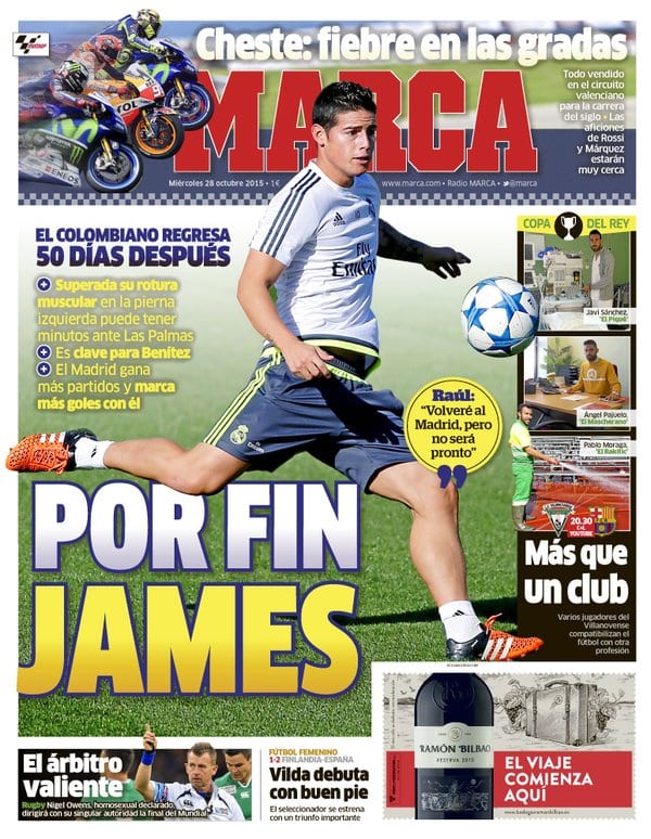 Mientras tanto en el Real Madrid, que no juega en España ni en Francia sino en el Universo, todo son buenas noticias, aunque haya que pedir perdón por todas y cada una de ellas. Está muy feo que tengamos un portero extraordinario, lo sabemos, perdónennos. Está muy pero que muy mal que ejecutemos la cuadratura del circulo siendo un equipo defensivo y a la vez siendo el más goleador, lo sabemos, perdónennos. Ahora tendremos que disculparnos también por la recuperación en la lesión de James Rodríguez, la cual nos tiene presas de una euforia por la cual de entrada solicitamos encarecidamente disculpas. Por cierto: es también noticia estos días que Florentino Pérez ha demandado a algún que otro medio por sugerir conexiones entre el fichaje de James (entre otros jugadores) y la actividad internacional de ACS. Nos faltan manos para aplaudir tanto esta acción como el ojo avizor permanente que todo esto exige: en este momento hay un periodista que se sienta delante de un ordenador para sugerir que FloPer está desde ya moviendo los hilos para condicionar la decisión de la justicia.