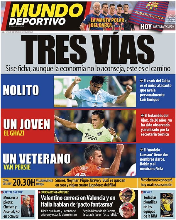 Entretanto, el Barça sigue a sus cositas (a saber, el brazo aberrantemente tatuado de Messi y el fichaje de Sergio Leone - la enunciación de hipotéticas contrataciones es casi como EL Bueno, El Feo y el Malo-) mientras espera para poder erguirse como un solo hombre a entonar su verdadero himno: https://www.youtube.com/watch?v=XCdeq_CECp4