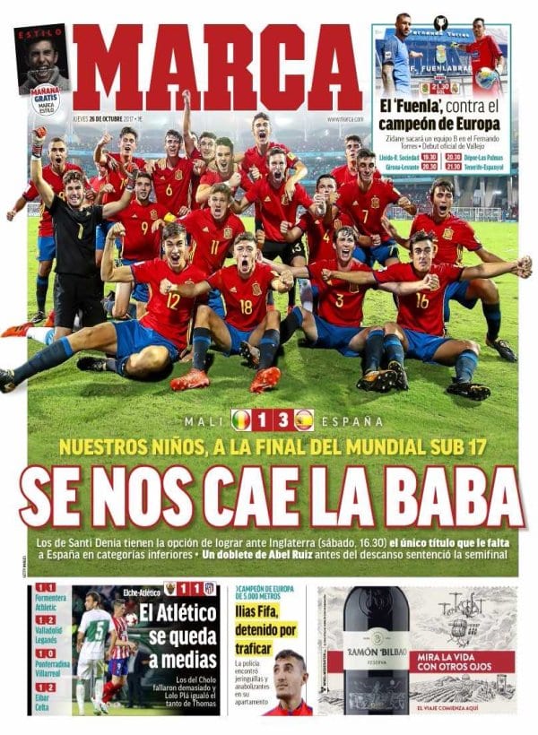 As escurre el bulto abrazado a la horterada onírica a la que aludíamos en líneas precedentes y Marca se apoya en un nuevo éxito de la selección española sub-17 cuyo diminutivo sobrevenido –Rojita- iguala, sino sobrepasa en regurgitante cursilería, al concepto “mirlos” para referirse a los jugadores del Castilla. Celebramos el éxito de los chavales, no tan “niños” como desliza Marca en su portada. Rojita sí, pero ya tienen pelos en… el sobaco.