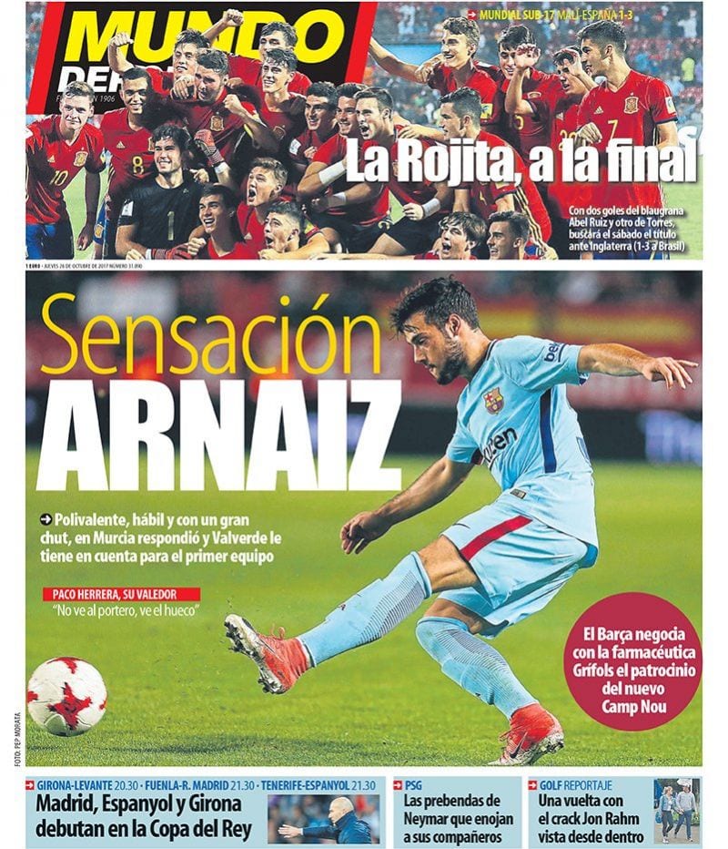 Lo de la Copa es tan épicamente rococó que muchas veces se cuela un churrigueresco en la portada. Es el caso de la nueva venta de estrellas que propone Mundo Deportivo. El diario de Godó, grande de España a su pesar y en los tiempos que corren, se ha venido arriba con el gol de Arnaiz, un chaval que dejó buenas sensaciones en La Condomina. Aquí anda el madridismo despellejándose a propósito de Karim pero allá nadie habla de un tal Paco que costó 30 kilitos.