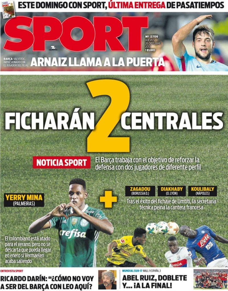 Esto viene a ser como fichar dos centrales – o tres o cuatro- en Navidad tal y como anuncia un tibio Sport en el día de hoy. En su portada también anda Arnaiz llamando a la puerta.