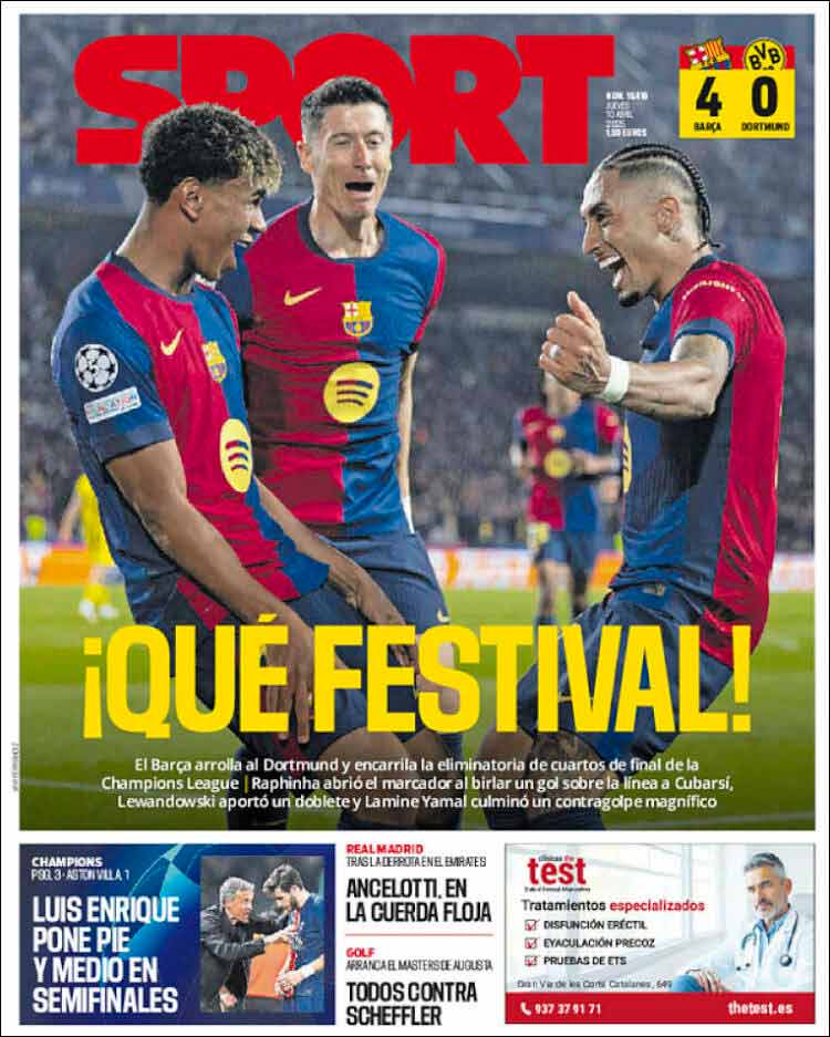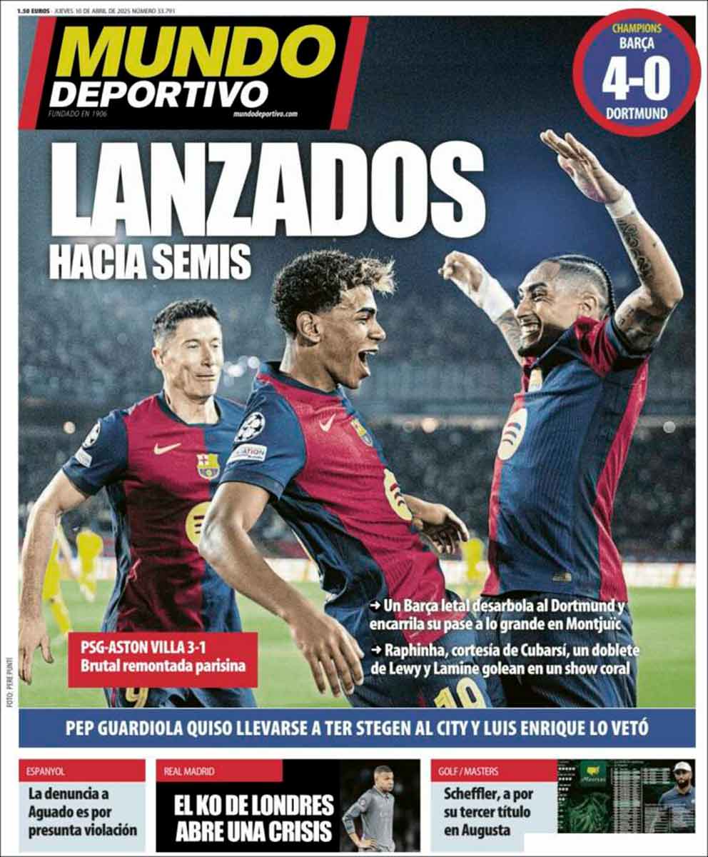 La prensa del FC Barcelona festeja como merece la clasificación virtual para semifinales de Champions. El 4-0 ante el Borussia y el excelente estado de forma, en todos los ámbitos, de los culés los sitúan a un paso de la finalísima. Aunque realmente ya están clasificados. Es más, son campeones. El ser humano no tiene capacidad para vaticinar el futuro, salvo cuando se trata de predecir las —evidentes— derrotas y eliminaciones del Madrid y los —obvios— triunfos y títulos del Barça. No es necesario nada más que echar un vistazo al palmarés de ambas entidades.