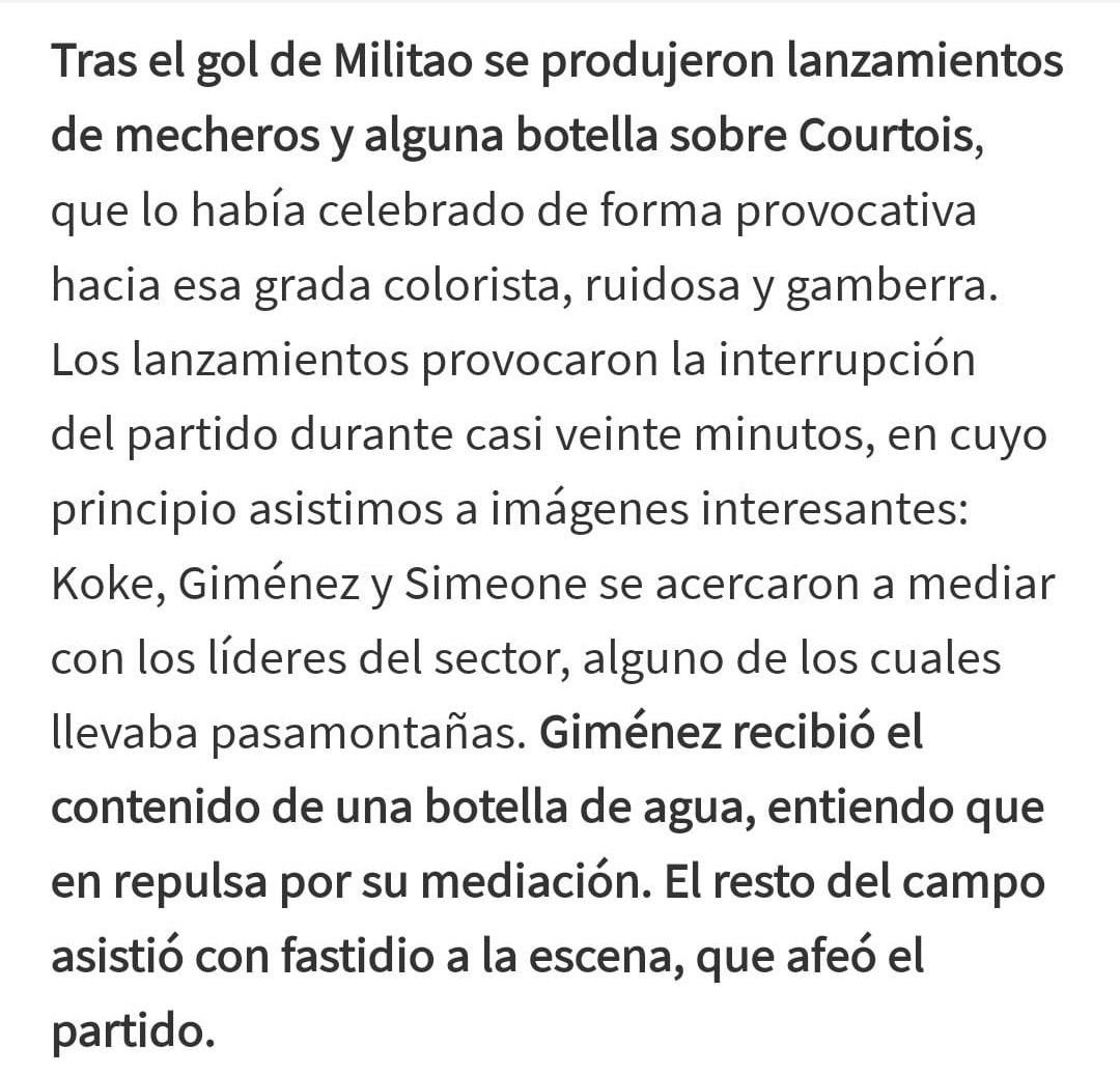 As sí tiene los bemoles de llamar al Frente Atlético Frente Atlético, con nombres y apellidos, y parece congratularse ante el hecho de que en octubre de 2024 el Atleti vaya a prohibir la entrada a su estadio de gente encapuchada. Son unos adelantados estos rojiblancos. Eso sí: insiste en la imposibilidad de actuar contra el Frente porque "oficialmente desapareció en 2014". Las comillas vuelven a ser nuestras, no de As. Es una maravilla de razón, ajena por completo al menor atisbo de hipocresía, no vayáis a pensar mal. De hecho, en el ataque que acabó con la muerte de Bin Laden, Estados Unidos lo tuvo jodido porque Al Qaeda no aparecía en los listados de la Cámara de Comercio Americoafgana.