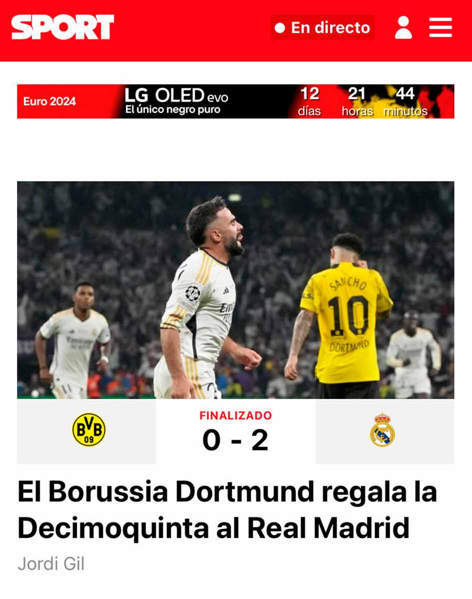Un compañero suyo de nombre Matías Vallés firma otra joya: «El Madrid no salió a jugar, solo a ganar». El cirujano no salió a operar, solo a salvar la vida del paciente. La colitis cerebral que provoca no ser del Madrid después de ganar la 15 guía a este señor a deyectar frases gloriosas como: «Vinícius, que marca porque chuta mal». Si bien reserva para el final la reflexión que denota el daño molecular —irreparable— antes mencionado: « La triste exhibición madridista de Wembley confirma que los blancos no reciban en ningún caso la etiqueta de mejor equipo de Europa, una jerarquía que se reserva rutinariamente para las sucesivas escuadras de Guardiola». La nostalgia del régimen.