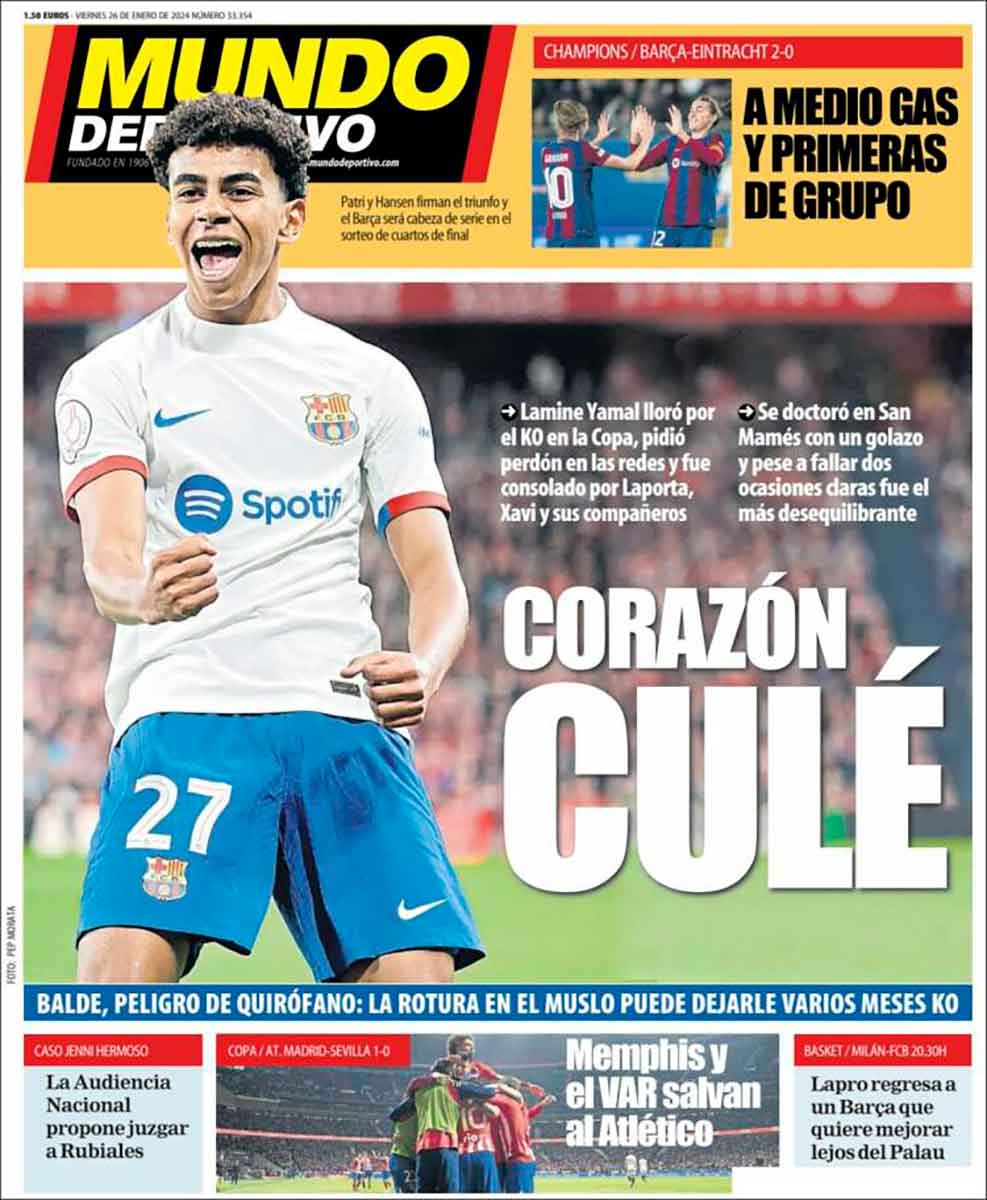 El texto acaba de terminar de consensuarse. Os lo adelantamos, recién salido del horno, sólo un segundo antes de dejaros con la prensa cataculé, que sigue compungida y se refugia en la calidad de sus canteranos mientras Xavi se tambalea. Por cierto, un buen amigo de Xavi, Enríquez Negreira, tendrá que declarar ante el juez, que no ha encontrado un deterioro cognitivo en el hombre del año 2023 lo suficientemente profundo como para considerarlo no apto para comparecer.
