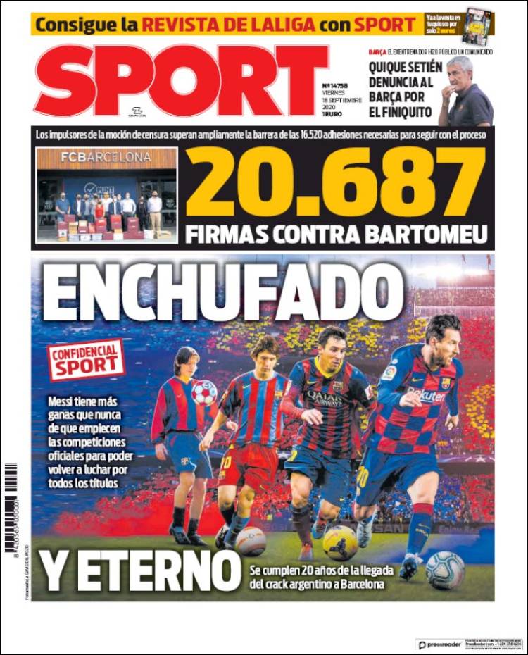Aún no repuestos del todo de la presencia de Pablo Iglesias entre los partidarios del voto de censura en Can Barça, nos fijamos en otros detalles de la portada, y nos reímos (porque hay que reírse, o acaso extasiarse ante las cimas de poesía que está alcanzando la gestión de Barto) ante algo de lo que ya os veníamos advirtiendo: “Setién reclama cuatro millones y anuncia que llevará al Barça a los tribunales”. Dicho así no se explica lo divertido que realmente es. Si queréis valorar en su justa medida la genialidad del asunto, simplemente leed el comunicado de Setién y los miembros de su equipo, hecho público ayer. Es mucho más cachondo que todos los portanálisis de la historia de La Galerna puestos en fila.