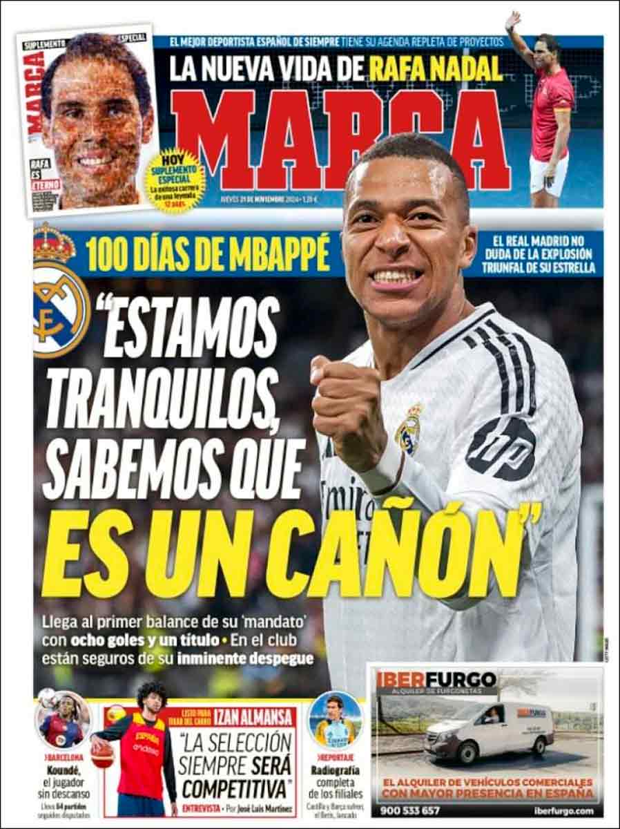 La portada del diario de Gallardo es para un Mbappé que aprieta el puño y los dientes en señal de triunfo, como si hubiese capturado al fin ese mosquito nocturno que sobrevuela nuestros tímpanos cual F-18. El protagonismo portadil se debe a sus primeros cien días —que no cañones— de blanco, saldados con ocho goles, un título y división de opiniones.
